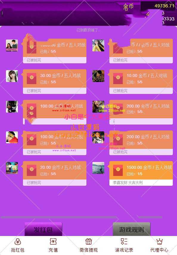 最新版吉利红包 扫雷 牛牛 接龙 龙虎斗游戏 纯源码完整运营版