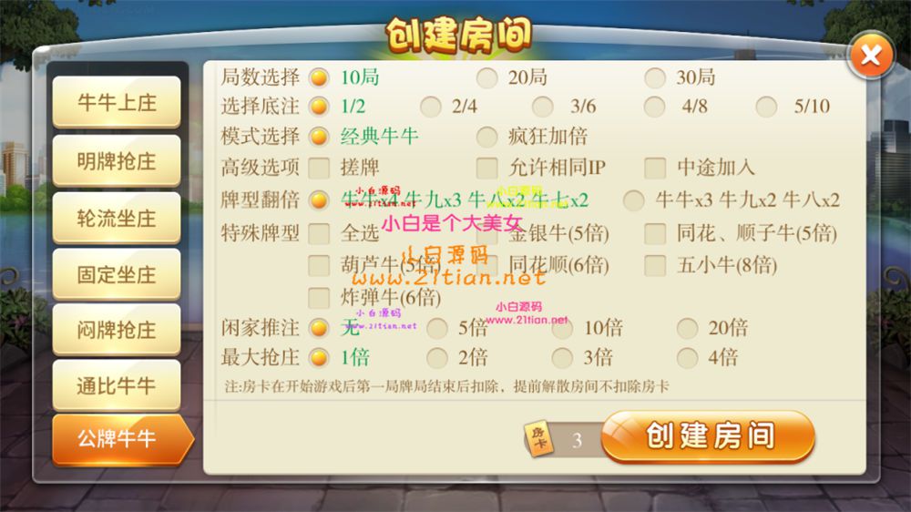 天天棋牌房卡游戏平台 支持俱乐部+亲友圈 |