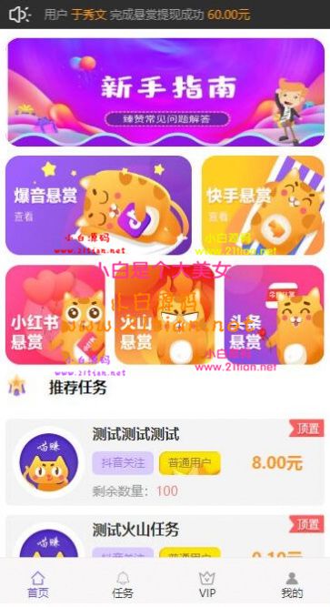[理财源码] 全新UI霸屏天下抖音快手关注点赞任务悬赏平台挂机赚钱程序源码 |